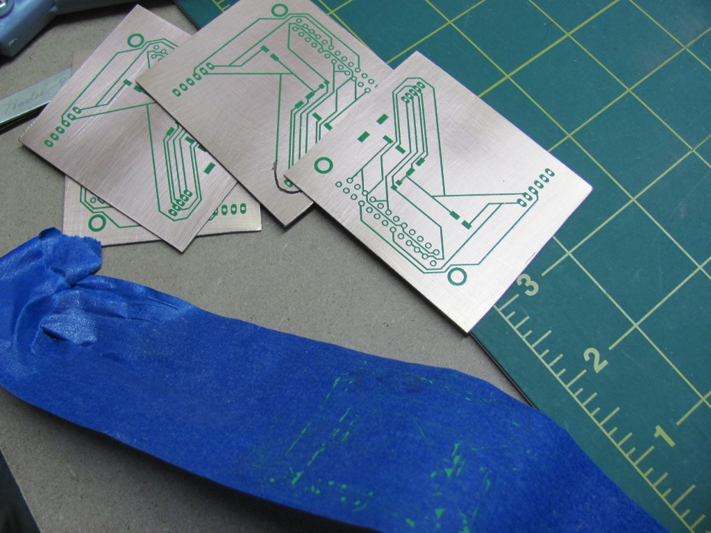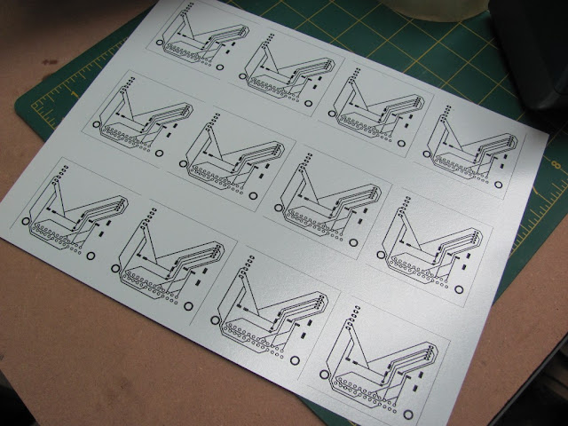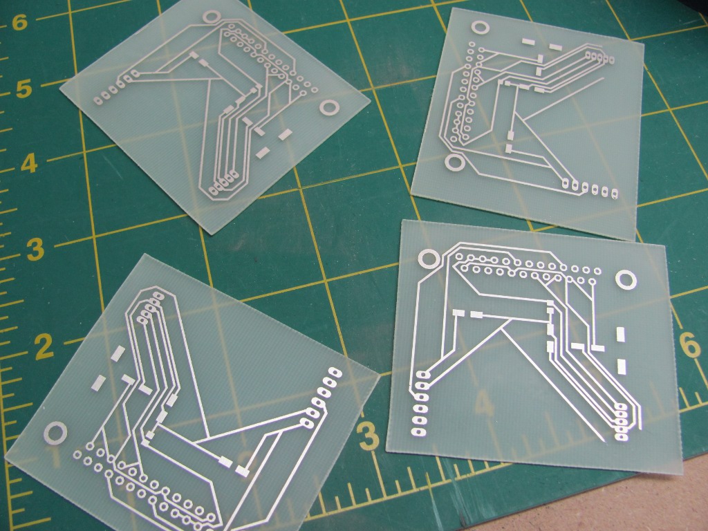 Depanelize the paper circuit boards and cut out single sided copper clad fibeglass boards to the desired size.